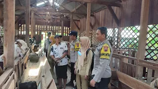 Seperti dilakukan Kapolsek Gajah AKP Sunardi bersama anggota Bhabinkamtibmas dan petugas Dinpertanpangan saat mengunjungi kandang ternak kambing milik Ngasipan (70), warga Desa Jatisono, Kecamatan Gajah, Kabupaten Demak.